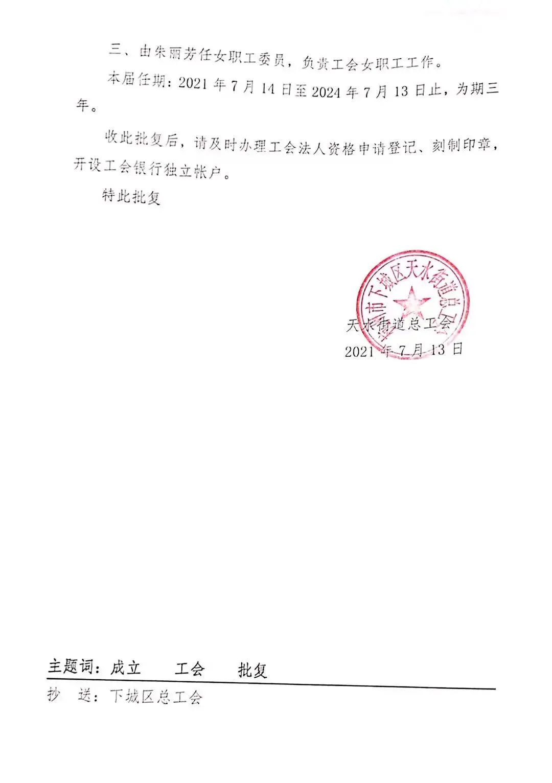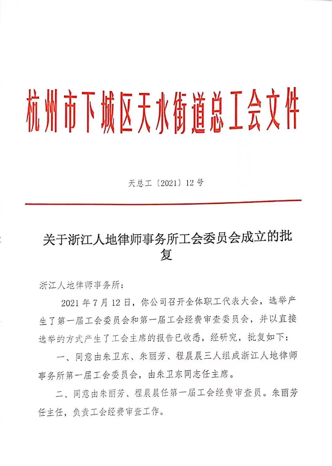 近日,依照《中华人民共和国工会法》和《中国工会章程》,经杭州市下城区总工会批准,浙江人地律师事务所正式成立工会基层委员会。