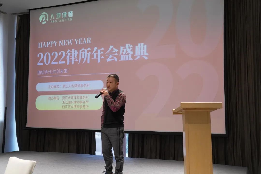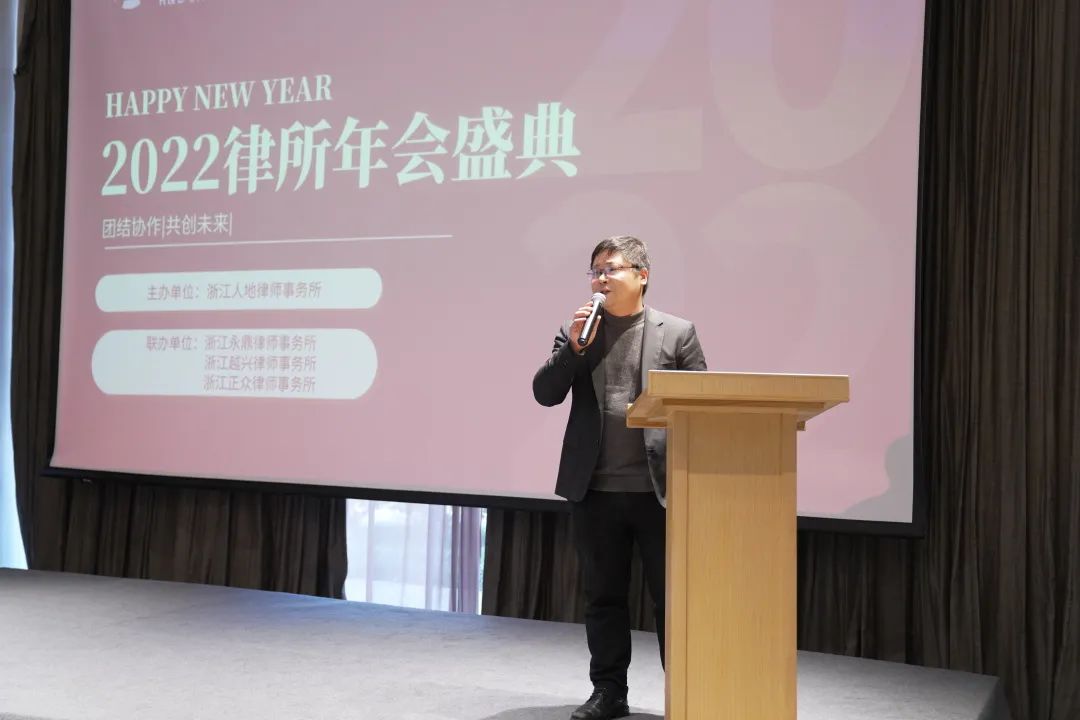 2022年1月15日,由人地所主办、永鼎所、越兴所、正众所联办的2022年年会在杭州西轩餐厅顺利召开,四家律师事务所合伙人、执业律师、实习律师及行政人员共计六十余人参加了本次年会。