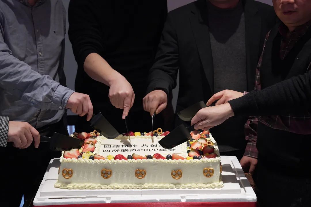 活动最后,由陆永强主任、马悦铨主任、朱良非律师、毛炬东律师、饶苍平律师、王越律师为大家分蛋糕。伴随着大家的欢声笑语,本次年会圆满落下帷幕,展望2022,我们有更多的期望与梦想,团结协作,再创新辉煌!